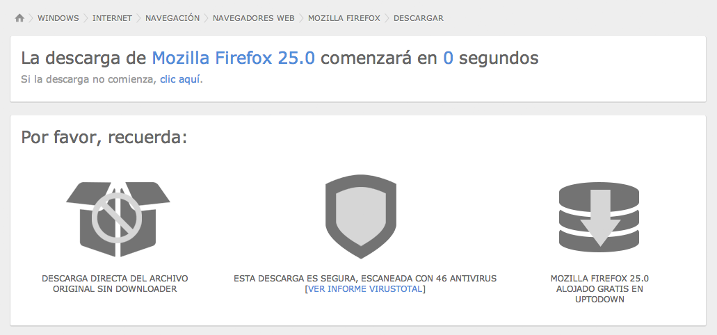 – Incorporar un completo análisis de seguridad de cada archivo que se va a descargar. VirusTotal es nuestra elección, 46 antivirus y un informe accesible siempre antes de la descarga.