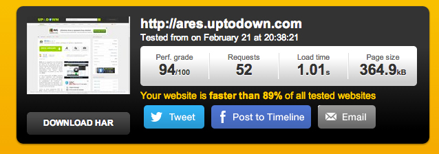A todo esto, @pepedom ha incluido una batería de optimizaciones para hacer aún más rápida la navegación y reducir el consumo en terminales móviles. Con esto llegamos al 97/100 en PageSpeed de Google y un 93/100 en performance grade de Pingdom.