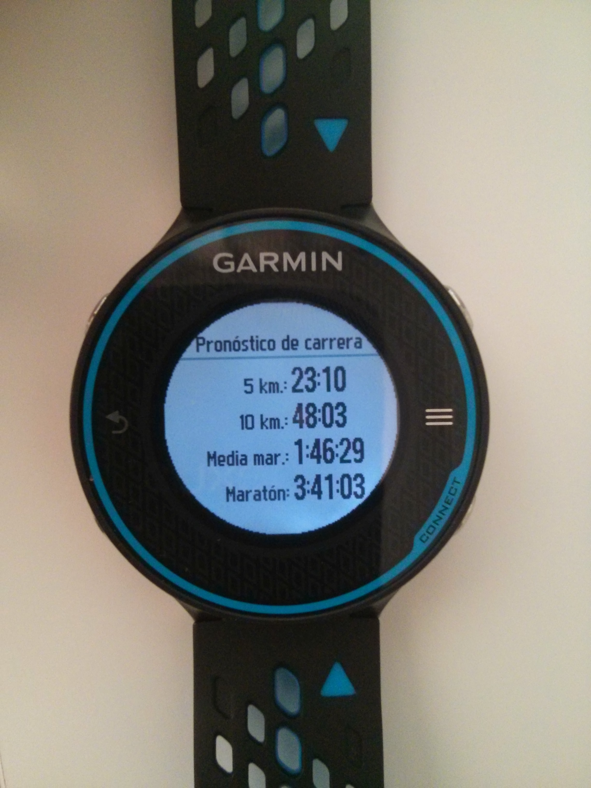 Sobre Race Predictor tengo que decir que en mi caso los tiempos pronosticados son optimistas – 23:10 los 5k, 48:03 los 10K, 3:41 Maratón -, pero las opiniones de corredores más expertos son que están un poco por encima de sus tiempos reales. Imagino que la precisión dependerá del número de salidas que hayamos registrado. En cualquier caso debemos tomar esto como una estimación indirecta basada en tablas y estadísticas de otros corredores, sin intención de sustituir una prueba de esfuerzo completa.