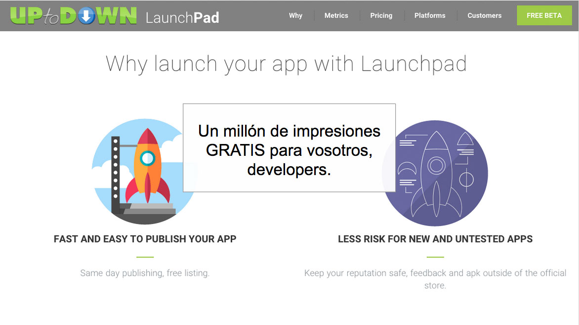 – Te ayudará a competir con otros desarrolladores que solo utilizan Google Play, con mayor difusión y como palanca para generar más instalaciones en Google Play en el medio plazo. Este es el mayor error en mi opinión, creedme que promocionar tu enlace en Uptodown generará más instalaciones en GPlay indirectamente (por la marca, por el contenido y por vuestra visibilidad en otros ámbitos).